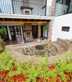 Esta elegante y amplia propiedad 🏡✨ es como un hotel de lujo, con toques rústicos y una excelente distribución. Inspirada en la arquitectura colonial, cuenta con un espacioso jardín 🌳 y 418 m² distribuidos así:
